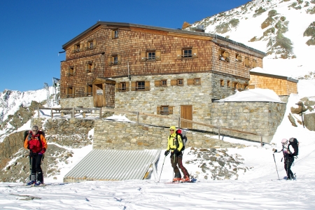 Etappe 9 ruft, es geht von der Similaunhütte hinauf zum Similaun (3599m), bei bestem Wetter.