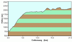 Nach dem langen Abstieg vom Vortag geht es nun wieder bis auf 1800 Meter hinauf. Jetzt wandert man meist flach dahin ohne groß absteigen zu müssen.