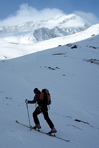 Das Wetter ist gut, doch die schnell ziehenden Wolken am Gipfel lassen nichts Gutes verhoffen...