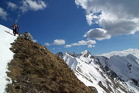 Einen Gipfel nehmen wir noch mit. Es geht noch ein paar Höhenmeter rauf zum Gaverdina (2047m). Rechts sieht man den zum Teil recht schmalen Grat zum Tofino.